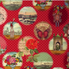 Eijffinger PIP 111 fotowand Remember Brighton Red met bloemen, vlinders, vogels, koekoeksklok, steden enz. € 210,-