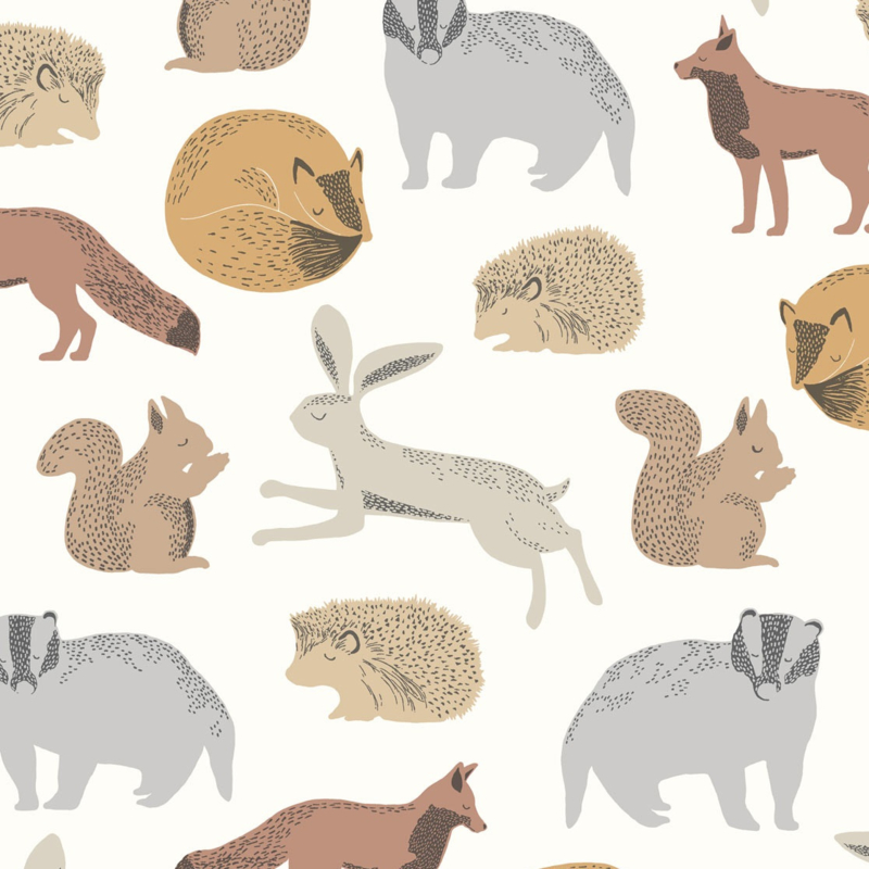 Eijffinger Mini Me behang met konijntje,vosje,eekhoorn,egeltje