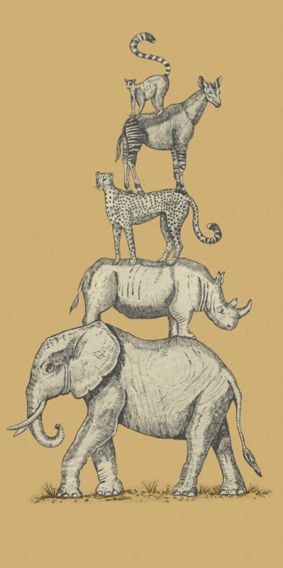 Eijffinger Mini Me Wallpower Safari Stack Ochre met olifant en neushoorn