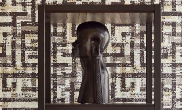 Prachtige aaibare dessins als een natuurlijk grasweefsel, een streep als een Berber tapijt, bohemien bloemen, een labyrintisch dessin en een diamantpatroon met de uitstraling van geweven stof. De subtiel glanzende prints contrasteren schitterend met de dessins met de uitstraling van een lemen muur. Van mahonie en aubergine tot Mombasa bruin, turquoise, terra en indigo tot Sahara zand, klei en ivoor.