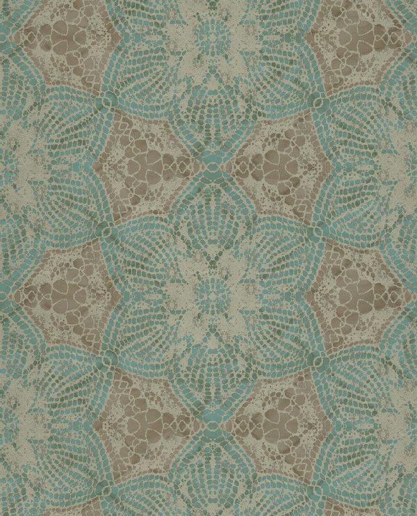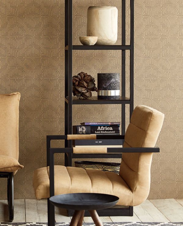 Prachtige aaibare dessins als een natuurlijk grasweefsel, een streep als een Berber tapijt, bohemien bloemen, een labyrintisch dessin en een diamantpatroon met de uitstraling van geweven stof. De subtiel glanzende prints contrasteren schitterend met de dessins met de uitstraling van een lemen muur. Van mahonie en aubergine tot Mombasa bruin, turquoise, terra en indigo tot Sahara zand, klei en ivoor.