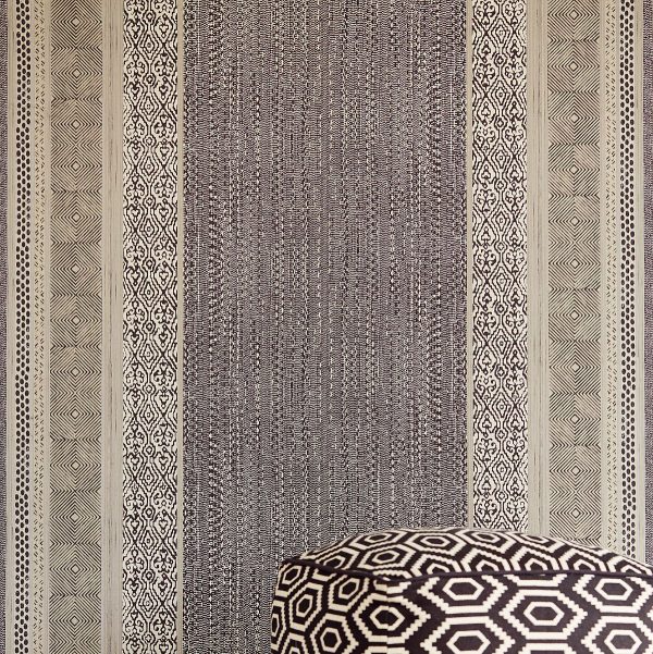 Prachtige aaibare dessins als een natuurlijk grasweefsel, een streep als een Berber tapijt, bohemien bloemen, een labyrintisch dessin en een diamantpatroon met de uitstraling van geweven stof. De subtiel glanzende prints contrasteren schitterend met de dessins met de uitstraling van een lemen muur. Van mahonie en aubergine tot Mombasa bruin, turquoise, terra en indigo tot Sahara zand, klei en ivoor.