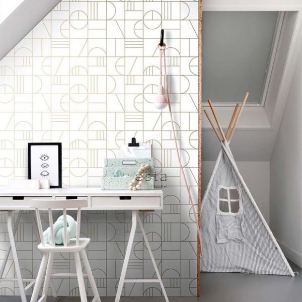 Esta behang Art Deco motief wit/goud 139141