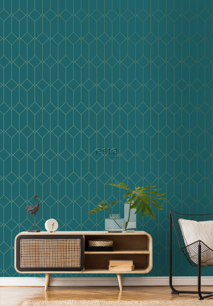 Esta Art Deco behang visgraat motief smaragd groen/goud