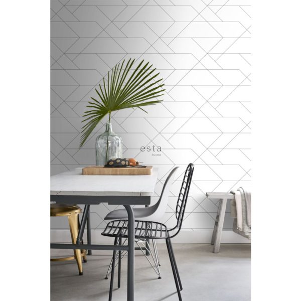 Esta Art Deco behang met grafische lijnen wit/zwart