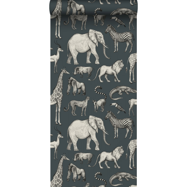 Esta behang bosdieren Jungledieren blauw/grijs 139272