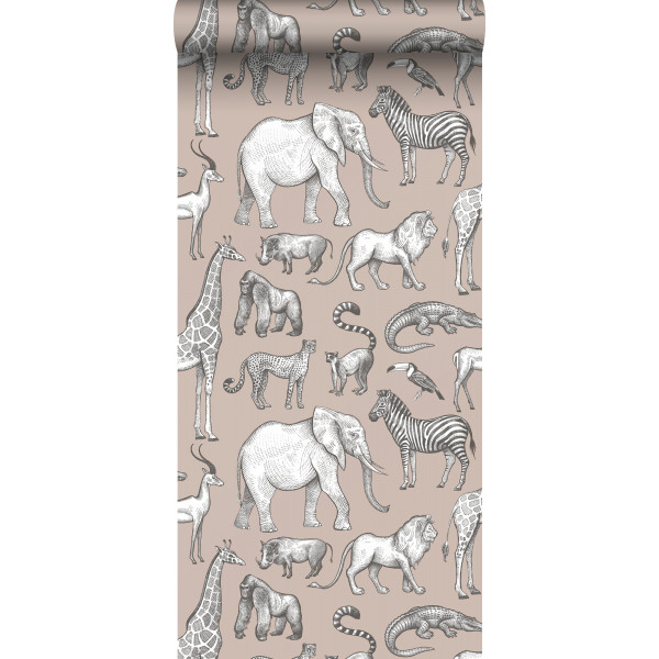 Esta behang Bosdieren met Jungledieren oudroze/grijs 139271