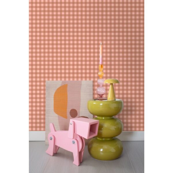 Esta behang met blokjes lichtblauw terra/roze 131296