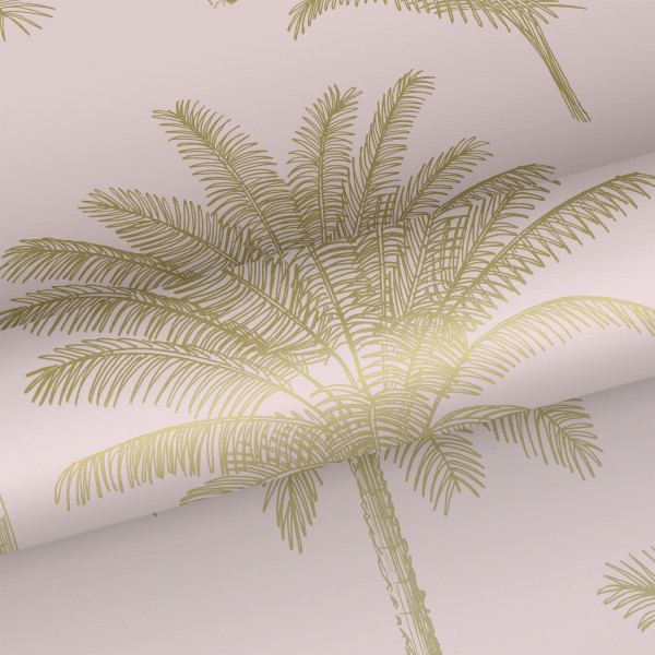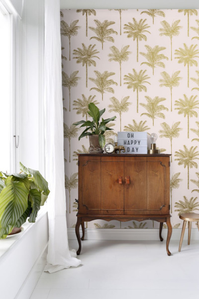 Esta behang Paradise met palmboompjes goud/roze