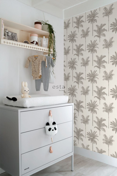 Esta behang Paradise met palmboompjes lichtbeige