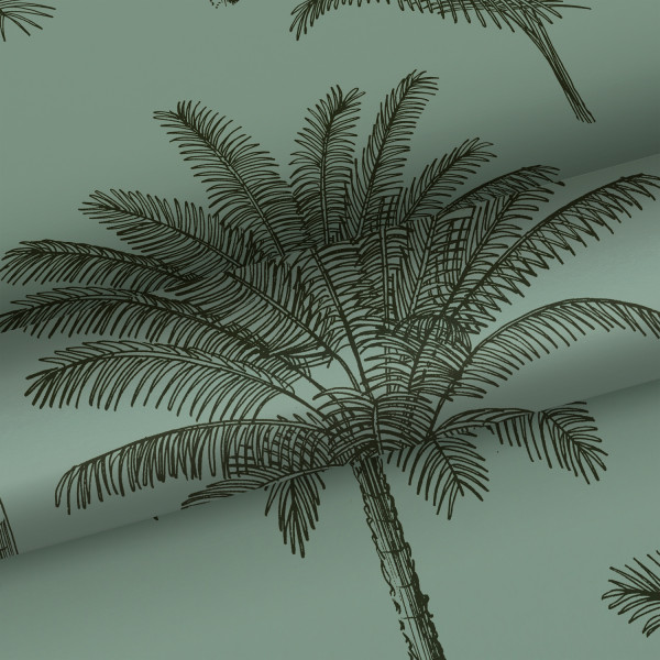 Esta behang Paradise met palmboompjes vergrijsd groen