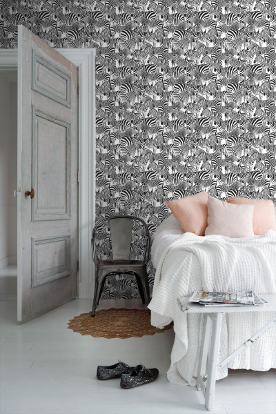 Esta behang Paradise met zebra s zwart/wit