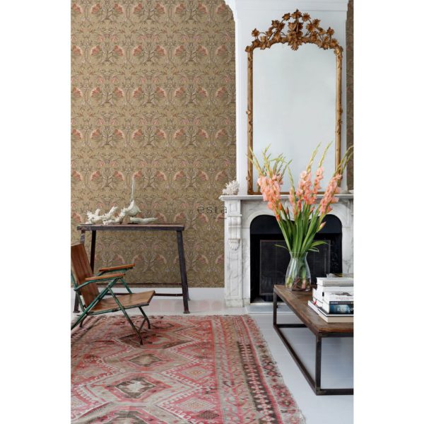 Esta behang Vintage flowers art nouveau stijl goud/terracottaroze