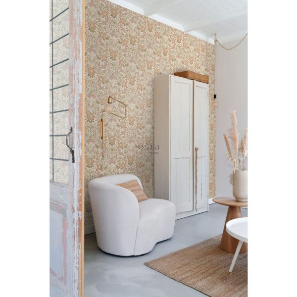 Esta behang Vintage flowers met bloemen en vogels zandkleur/beige/oudroze art nouveau stijl