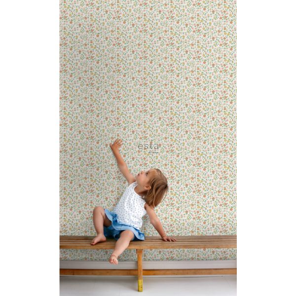 Esta behang Forest Friends/Vintage Flowers bloemetjes okergeel/zachtroze/terracotta