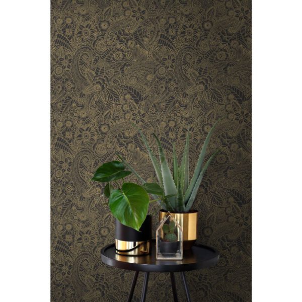 Esta behang Forest Friends/Vintage Flowers goud zwart