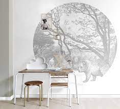 Esta behangcirkel Bosdieren met bos grijs 159072