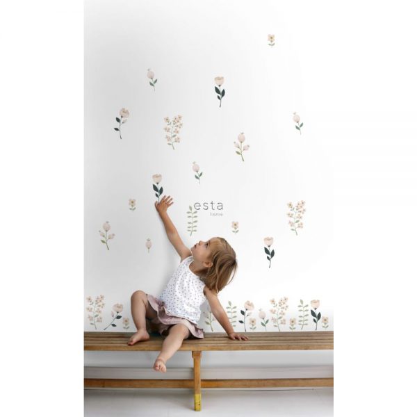 Esta muursticker bosdieren met bloemen roze 156114