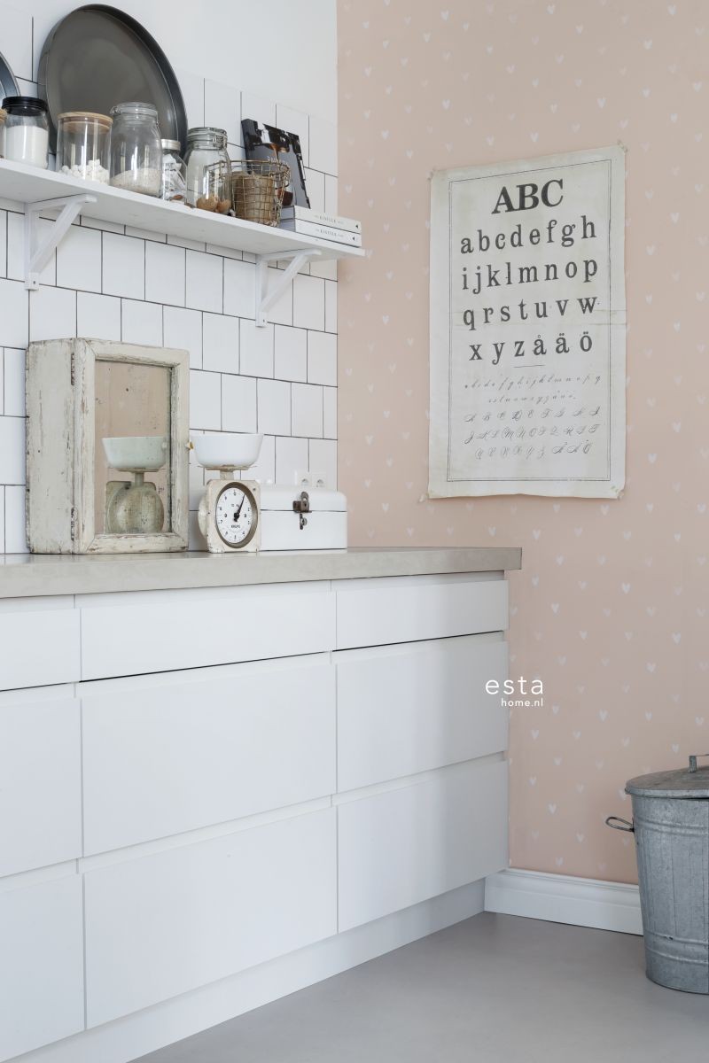 Hip meidenbehang met lieve handgetekende hartjes, dat is dit leuke vliesbehang van ESTAhome.nl. Lief en trendy behang voor in een moderne meisjeskamer. Doordat de hartjes handgetekend zijn krijgt het behang een speels effect. Gaaf voor het creëren van een vrolijke en creatieve wand in een “happy & sweet” slaapkamer.