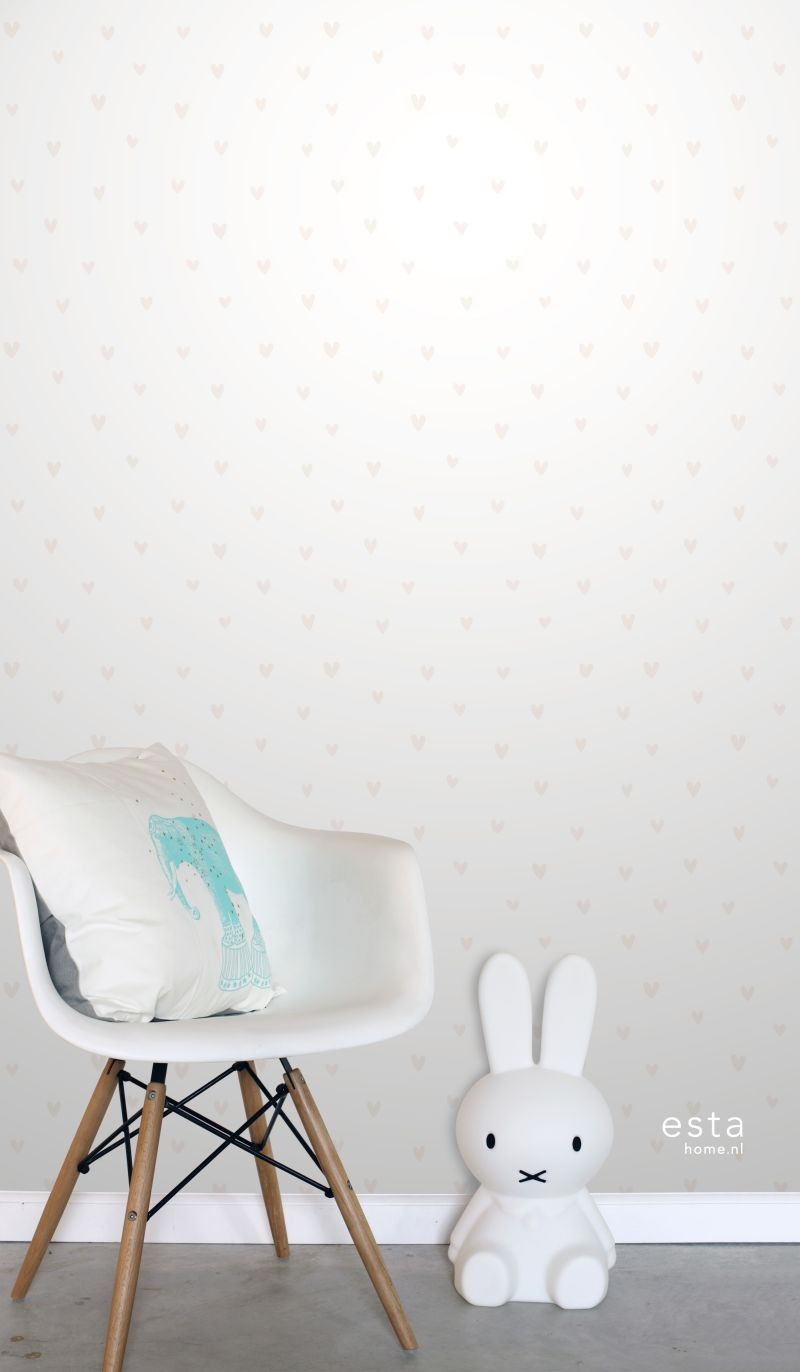 Hip meidenbehang met lieve handgetekende hartjes, dat is dit leuke vliesbehang van ESTAhome.nl. Lief en trendy behang voor in een moderne meisjeskamer. Doordat de hartjes handgetekend zijn krijgt het behang een speels effect. Gaaf voor het creëren van een vrolijke en creatieve wand in een “happy & sweet” slaapkamer.
