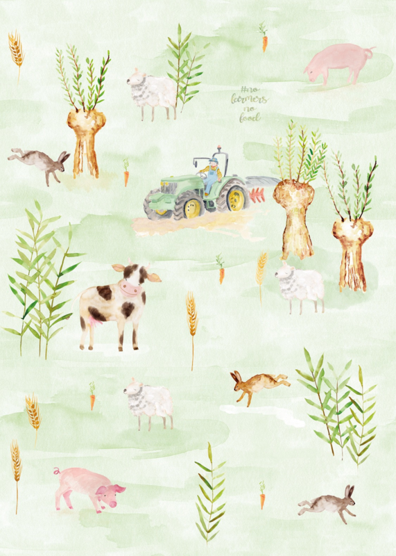 Fotobehang Farm Green/Boerderij/Tractor/Dieren/Kinderkamer Behang
