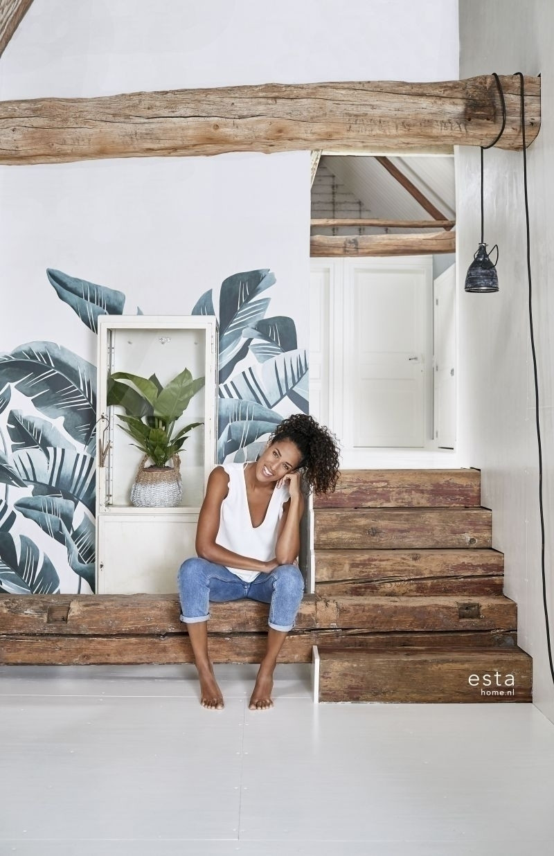 Esta Fotobehang grote bananenbladeren blauwgroen 158898