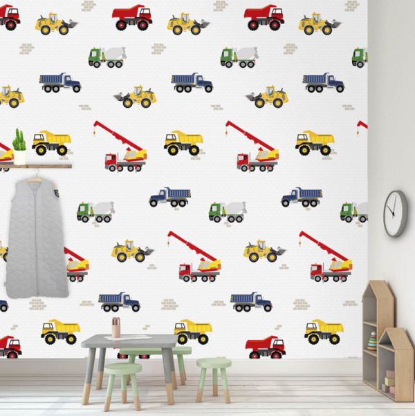 Fotobehang Let’s Build/Werkvoertuigen/Kinderkamer Behang