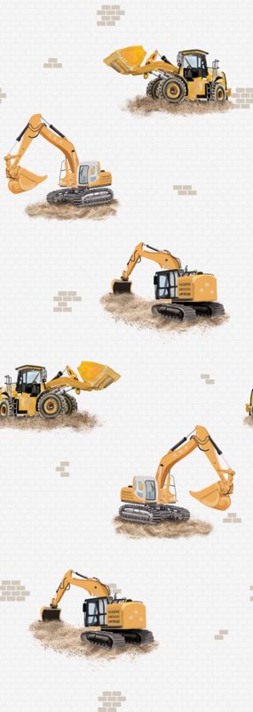 Fotobehang Let’s Dig/Graafmachine/Laadwagen/Sjofels/Werkvoertuigen/Kinderkamer Behang