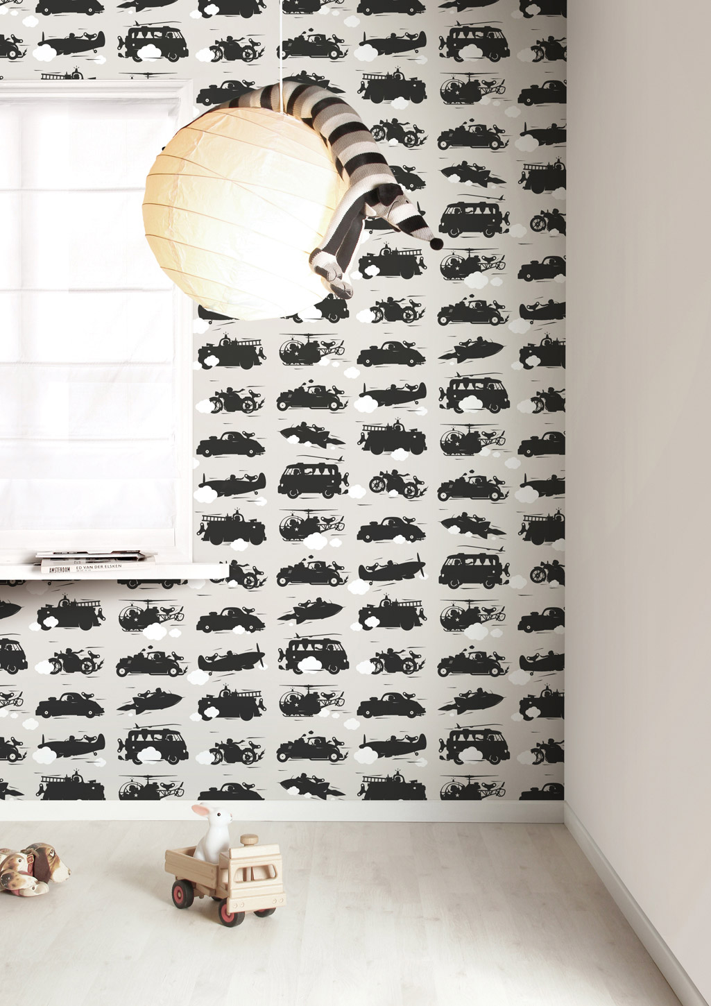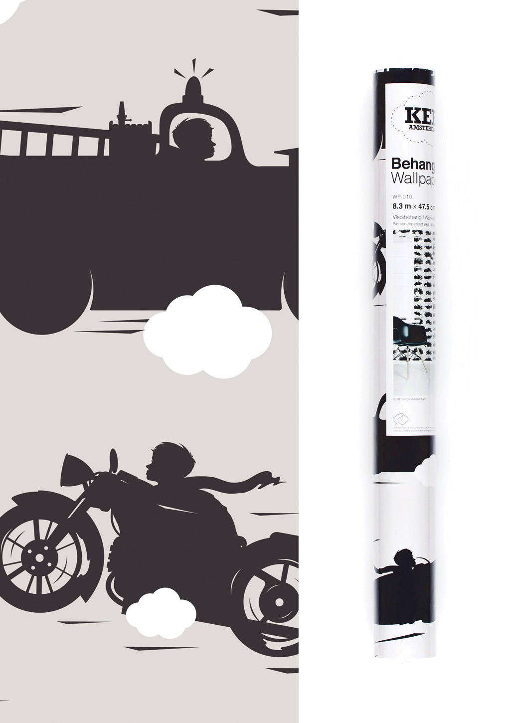 KEK Amsterdam Behang KIDS jongens voertuigen grijs zwart wit