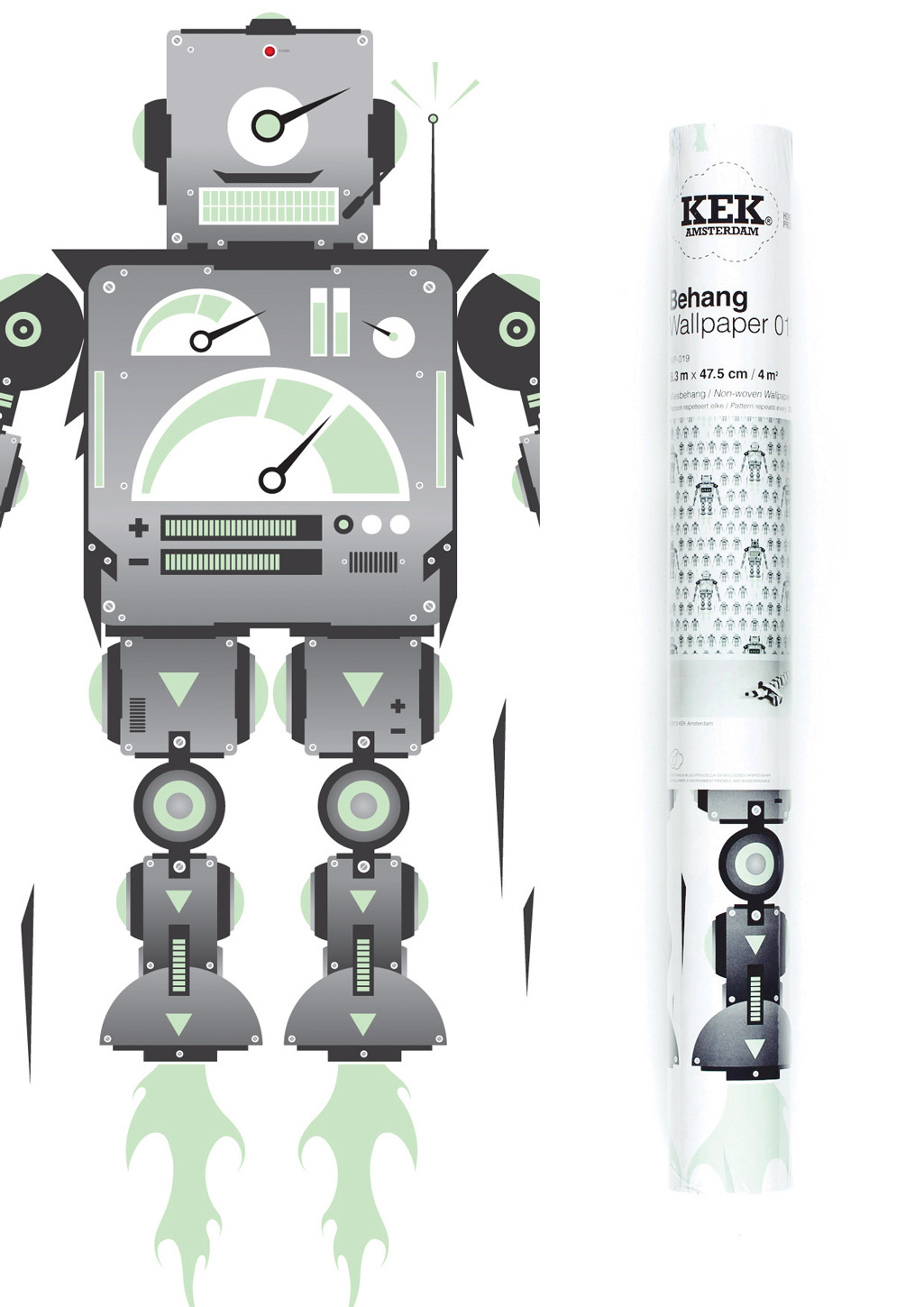 KEK Amsterdam Behang KIDS robot wit grijs zwart groen