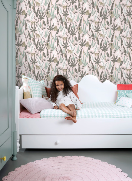 Vliesbehang , behangen met pakje Perfax roze vlieslijm of emmer vlieslijm.